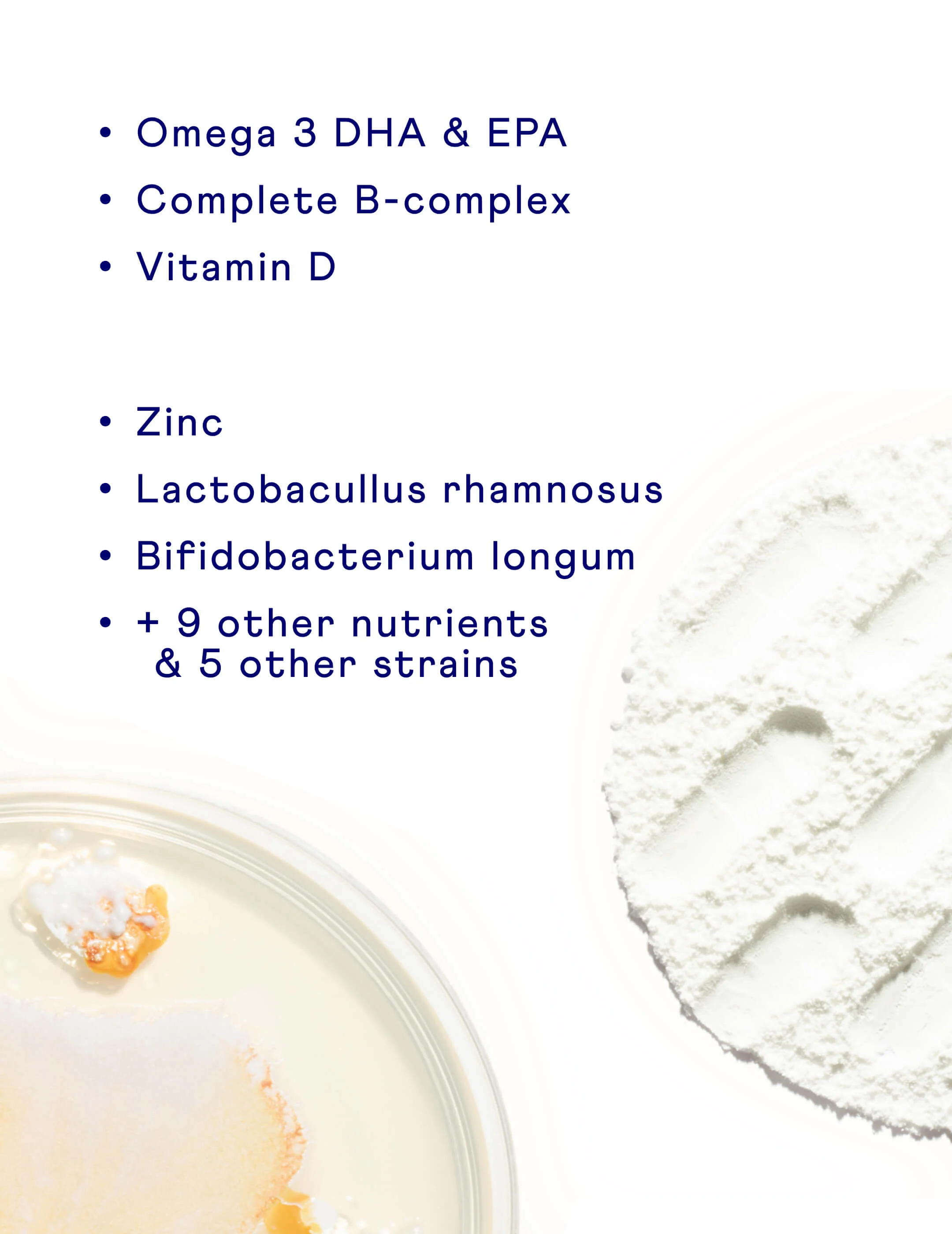 2 supplements. 20 vital nutrients meet 20 billion beneficial bacteria.